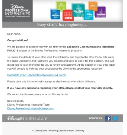 Long story short, I got that internship. Starting this June, I will be the Executive Communications Intern for Walt Disney World. No, I can’t believe it and yes, I am unbelievably excited. I’ll be moving to Orlando to work with the Executive Communications team to write correspondence, make presentations, maybe write a speech or two, and develop communication strategy. I’ll fill you in more once I’m down there.